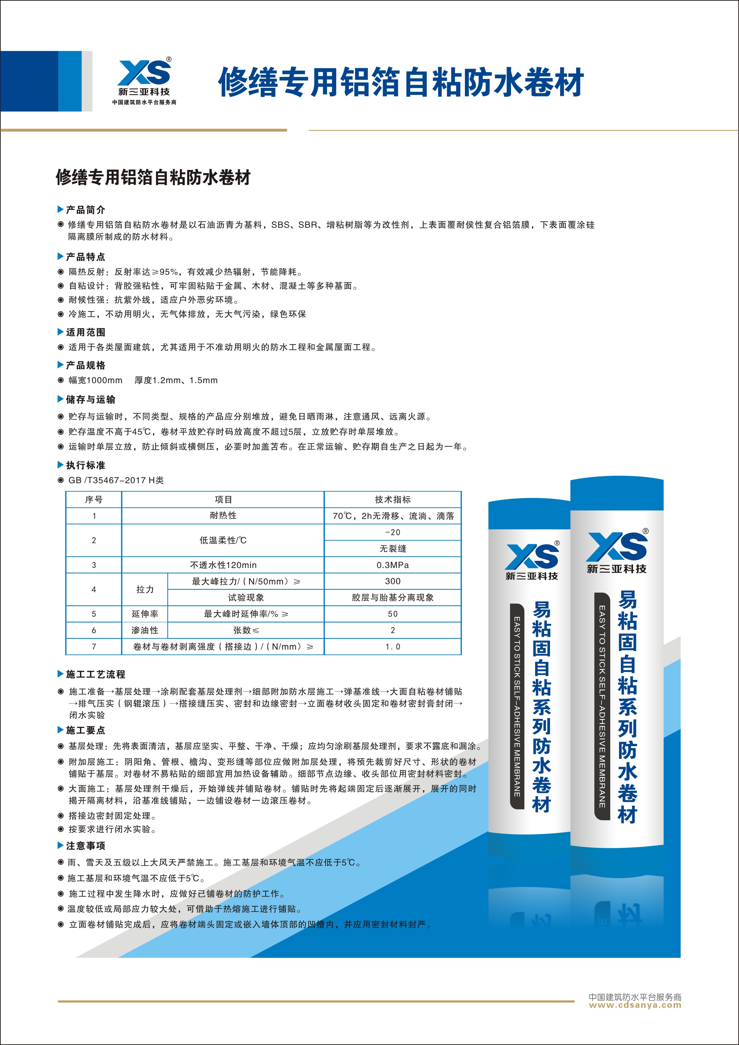 修繕專用鋁箔自粘防水卷材以石油瀝青為基料,SBS、SBR、增粘樹(shù)脂等為改性劑,上表面覆耐侯性復(fù)合鋁箔膜,下表面覆涂硅隔離膜所制成的防水材料。